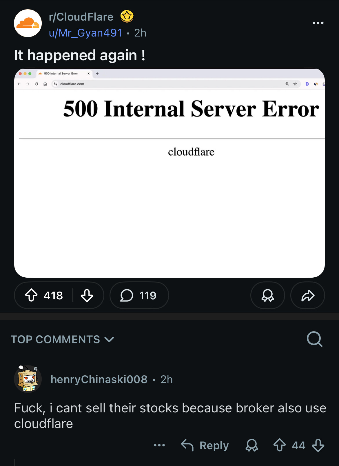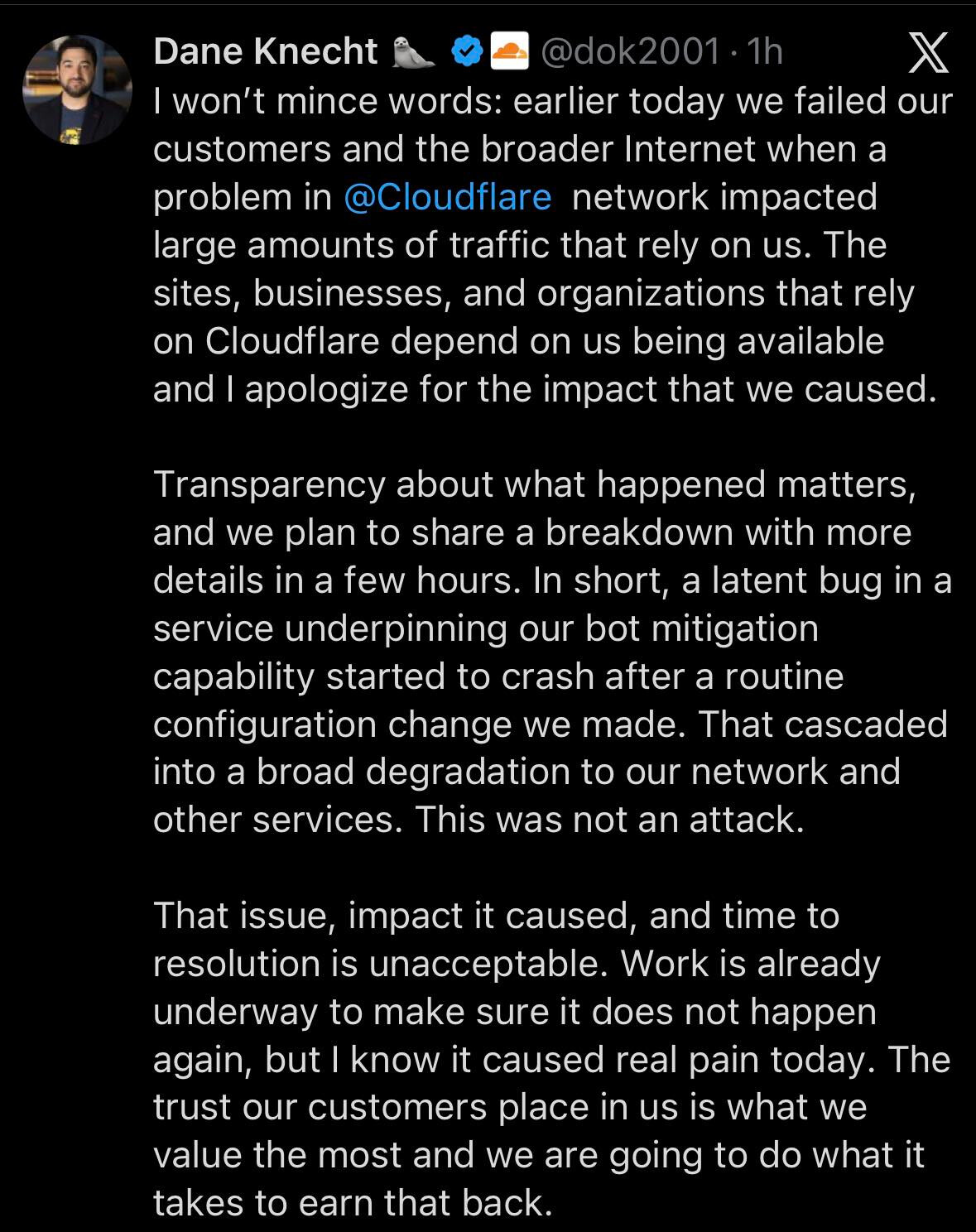 Hier is de write-up: https://blog.cloudflare.com/18-november-2025-outage/