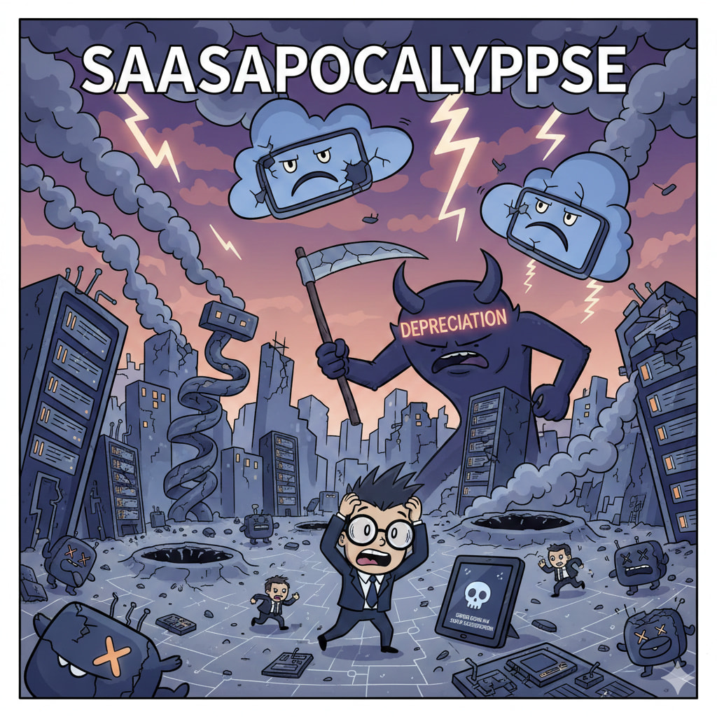 Ik las net de laatste nieuwsbrief en dacht… We laten AI een beeld maken van de Saaspocalypse