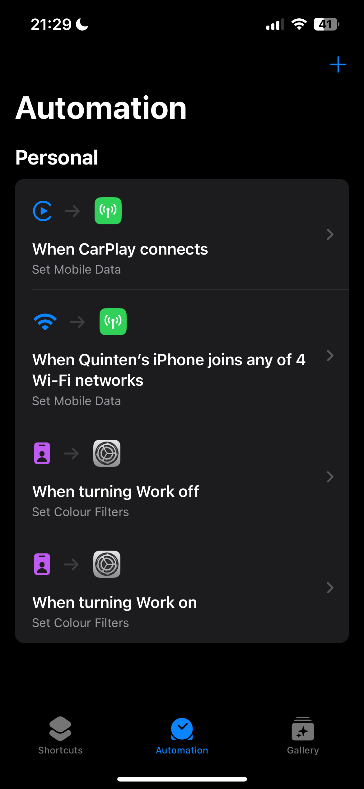Nu heb ik een automation die mobiele data uitzet wanneer ik verbind met 1 van 4 wifi netwerken (kan ook gewoon allemaal)